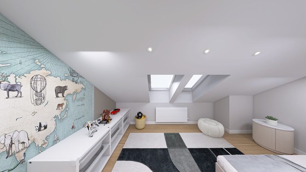 Pokój małego odkrywcy łączy marzenia z funkcjonalnością. Najważniejszym wyzwaniem było stworzenie przestrzeni do zabawy i odpoczynku. W rezultacie powstało wnętrze pełne energii, a jednocześnie uporządkowane i praktyczne.