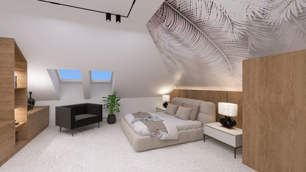 Prezentuję jeden z moich najnowszych projektów – kompleksową metamorfozę poddasza. To harmonijne połączenie piękna i funkcjonalności, w pełni odpowiadające potrzebom domowników. Dzięki przemyślanemu planowi udało się stworzyć przestrzeń, która jest spójna, wygodna i pełna charakteru.